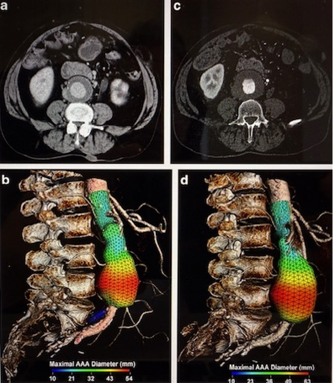 精确测量: 准确测量动脉瘤的最大径(通常为横断面最大外壁间距离)至关重要。这不仅是干预时机的重要依据,也与其血流动力学相关——最大径处常是壁面应力最集中的区域。
