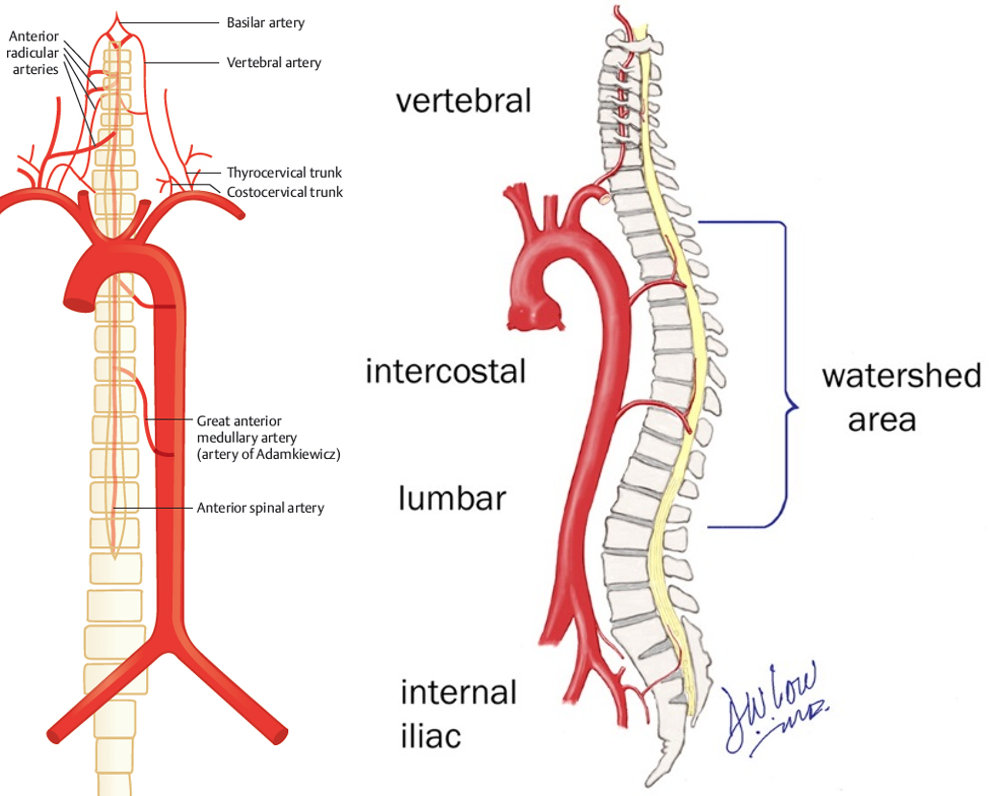 关键解剖结构: Adamkiewicz动脉(最大根髓动脉) 的识别至关重要。术前影像(如CTA、MRA)应尽力定位其通常的发出节段(T9水平附近),支架远端锚定区应尽量避免覆盖。