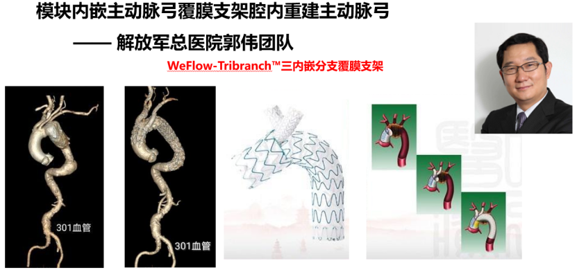 解放军总医院郭伟教授团队研发的WeFlow-Tribranch™三内嵌分支覆膜支架系统,采用模块内嵌设计,实现了主动脉弓的全腔内重建。