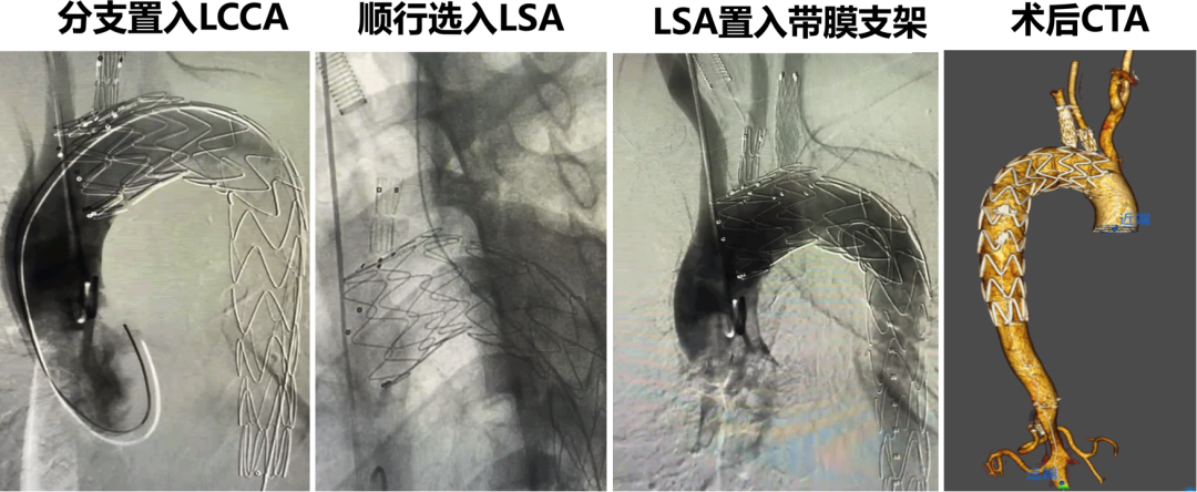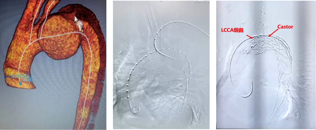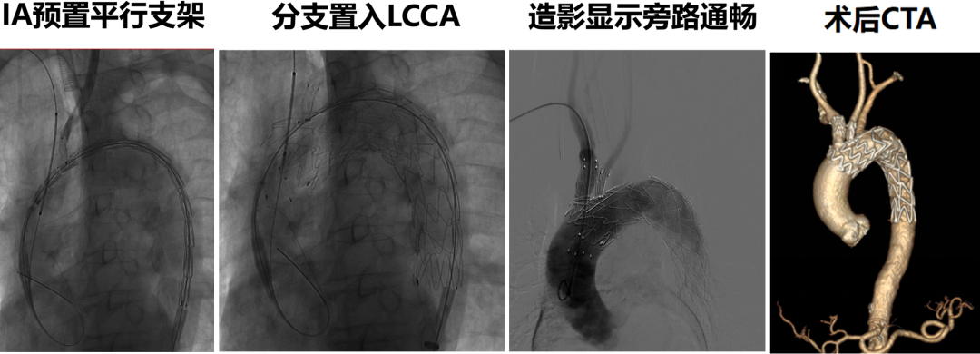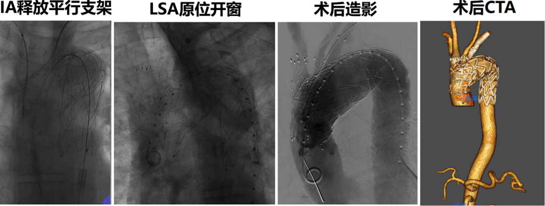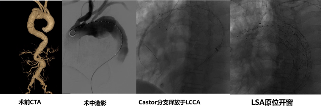 ★ Case5:主动脉弓部溃疡,带分支支架重建LCCA+平行支架重建IA+原位开窗重建LSA