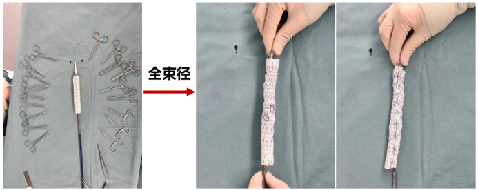 全程束径: 支架主体在体内需保持“束径”状态(即未完全释放),以维持其可转动性,这是超选成功的关键。