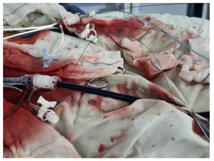 创伤与失血量大:上肢动脉切开本身即为有创操作,且术中因鞘管密封问题常伴有持续性渗血,复杂手术耗时数小时,累积失血量可达1000ml,增加患者负担。
