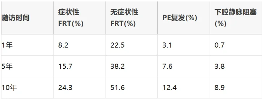 滤器相关血栓的流行病学呈现时间依赖性和累积性特点,大型队列研究显示:永久性滤器置入后10年内症状性FRT发生率高达20%-35%,其中5%-10%发展为下腔静脉阻塞综合征。