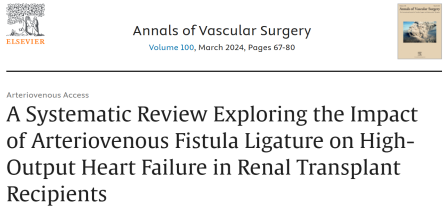 系统评价:2024年发表一项动静脉瘘关瘘对肾移植患者高输出量心力衰竭影响的系统评价,研究共纳入 16 项研究,涉18,735 名受试者,研究指出AVF流量>1500ml/min ,或AVF流量/心输出量>0.3的肾移植患者心衰风险高,应考虑AVF关瘘。(Yasir MB, 2024)
