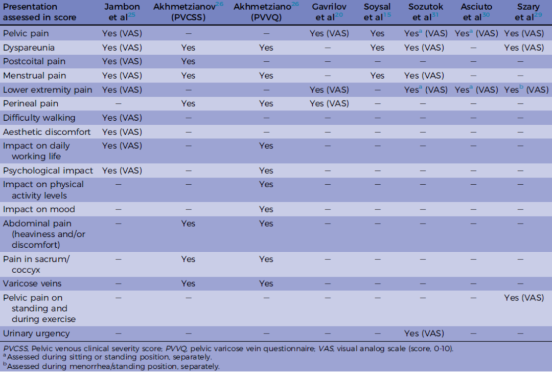 如Beard评分(基于卵巢静脉直径、造影剂消失时间、静脉丛淤滞程度,≥5分诊断)、Chung和Huh评分等,试图量化疾病严重程度。