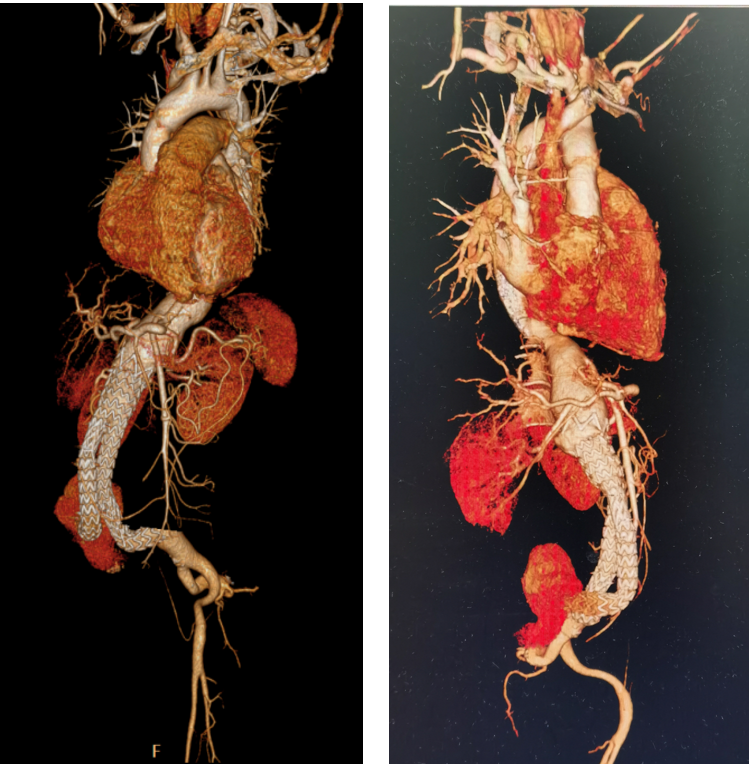 病例2:Bentall术后36天 夹层TAAA累及左髂总行杂交手术;流入道血管:右髂总动脉;术后8年CTA复查结果良好