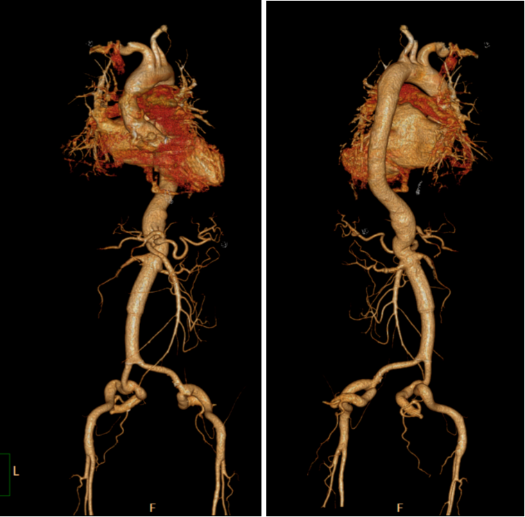 病例4:Bentall术后慢性胸腹主动脉夹层瘤。
