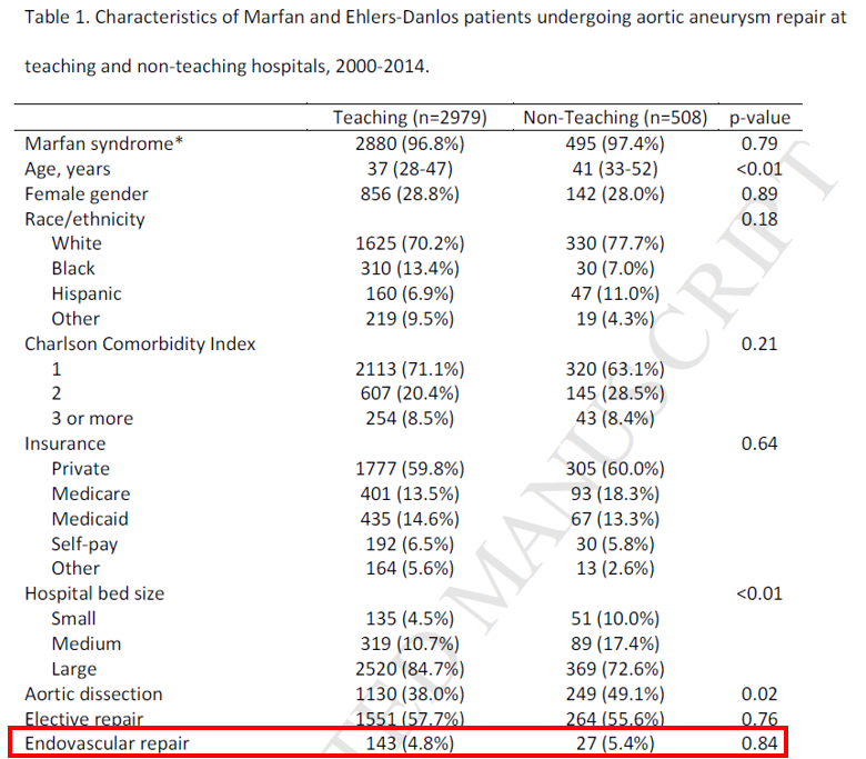 美国住院病人数据库2000-2014年3487例MFS主动脉手术中,腔内仅170例(4.88%)(Holscher CM et al. Ann Vasc Surg 2019)。