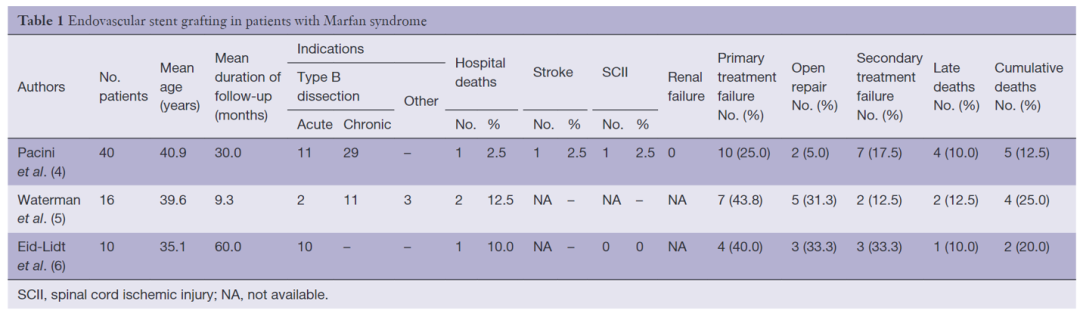 目前马凡综合征是被认为是腔内治疗的禁忌症,在所有的大宗临床试验中均被排除纳入标准