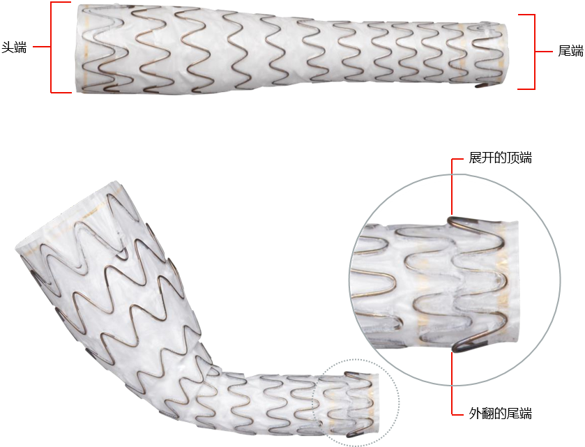 延伸段作为可选组件,用于在主体支架释放后进一步延长近端锚定区或增强密封效果。其输送导管工作长度105 cm,需通过DRYSEAL Flex导引鞘导入。释放后包束膜套随导管一并移除,纵向不透射线标记可帮助术者识别膜套位置,确保安全回撤。