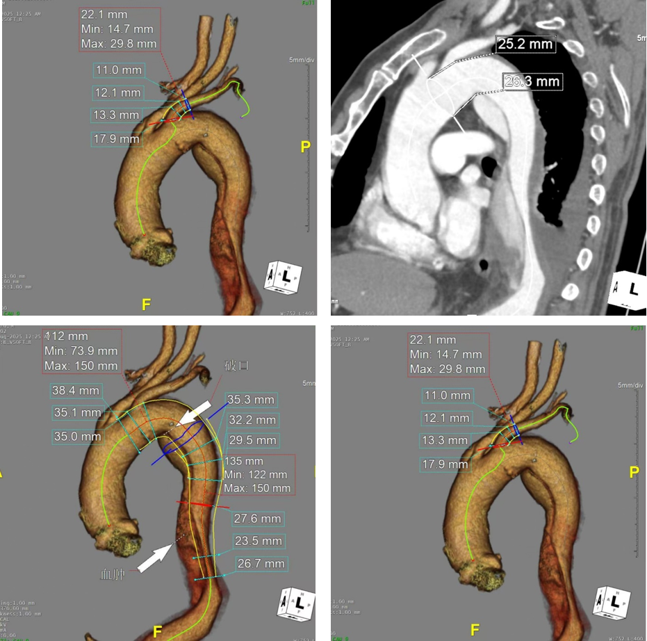 分支支架最大直径可达20 mm,与主体支架8 mm及12 mm内嵌孔道搭配,几乎能覆盖所有弓上分支的重建需求。若需重建无名动脉,可结合头臂转流技术,实现全弓腔内修复。