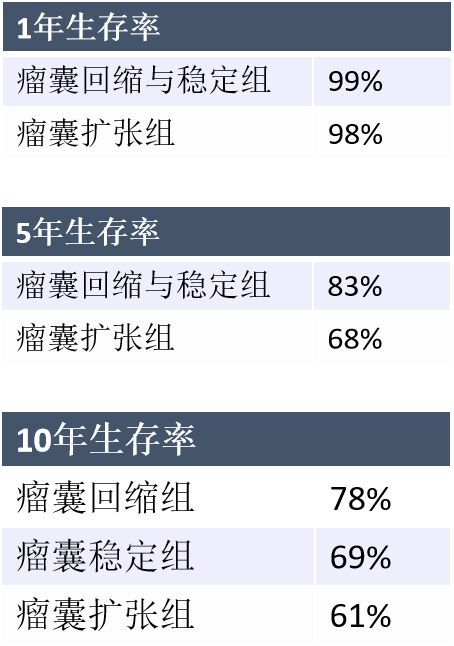 瘤囊稳定:直径变化在5mm以内
