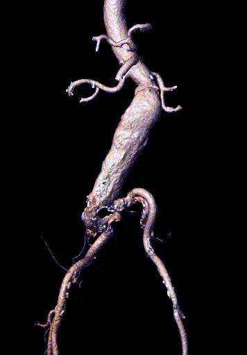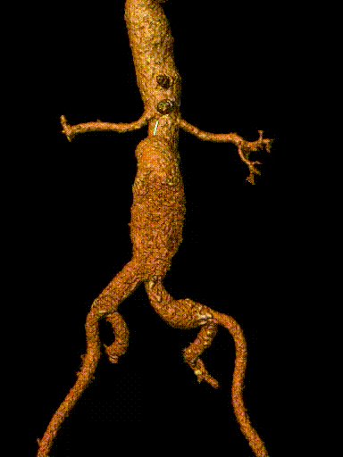 案例五:查体发现腹主动脉,行CTA确认腹主动脉瘤伴血栓形成。