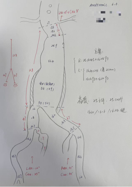 案例三(梯形瘤颈):3年前肾结石,在治疗复查过程中发现腹主动脉瘤。